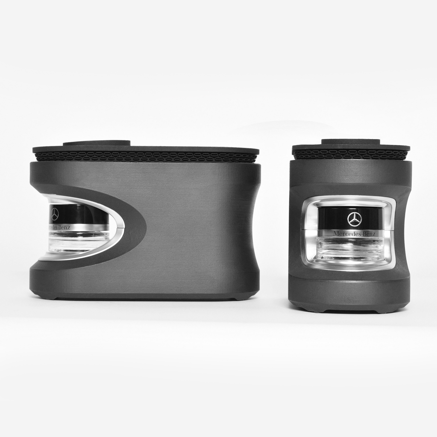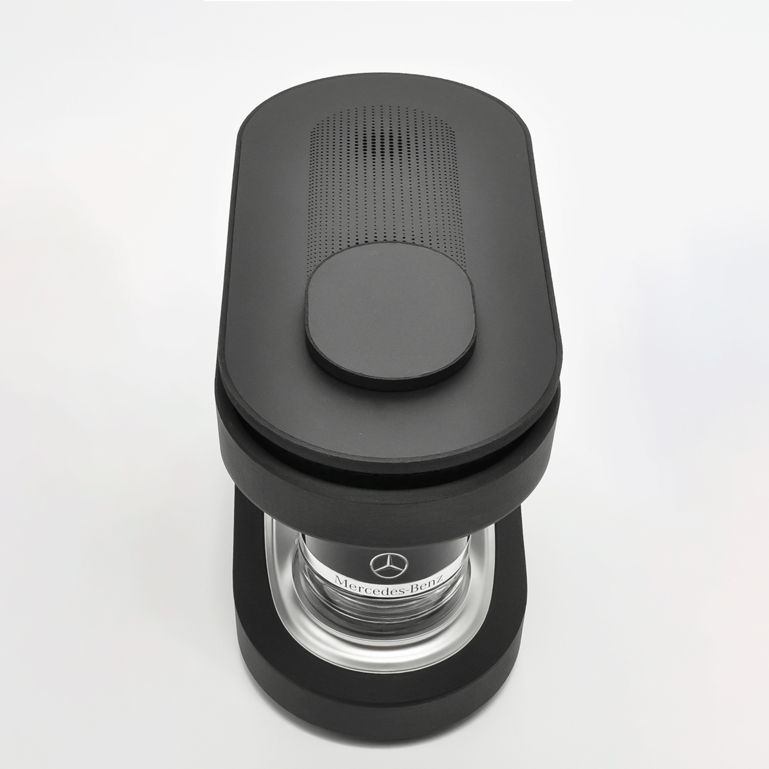 The final design seamlessly integrated functional aesthetics that were parametrically and computationally generated. These computational details serve as outlets for perfume while also drawing aesthetic inspiration from the grille of Mercedes cars. In low light conditions, the parametric features allow light to pass through, creating an ethereal aura that enhances both the product and its surroundings.