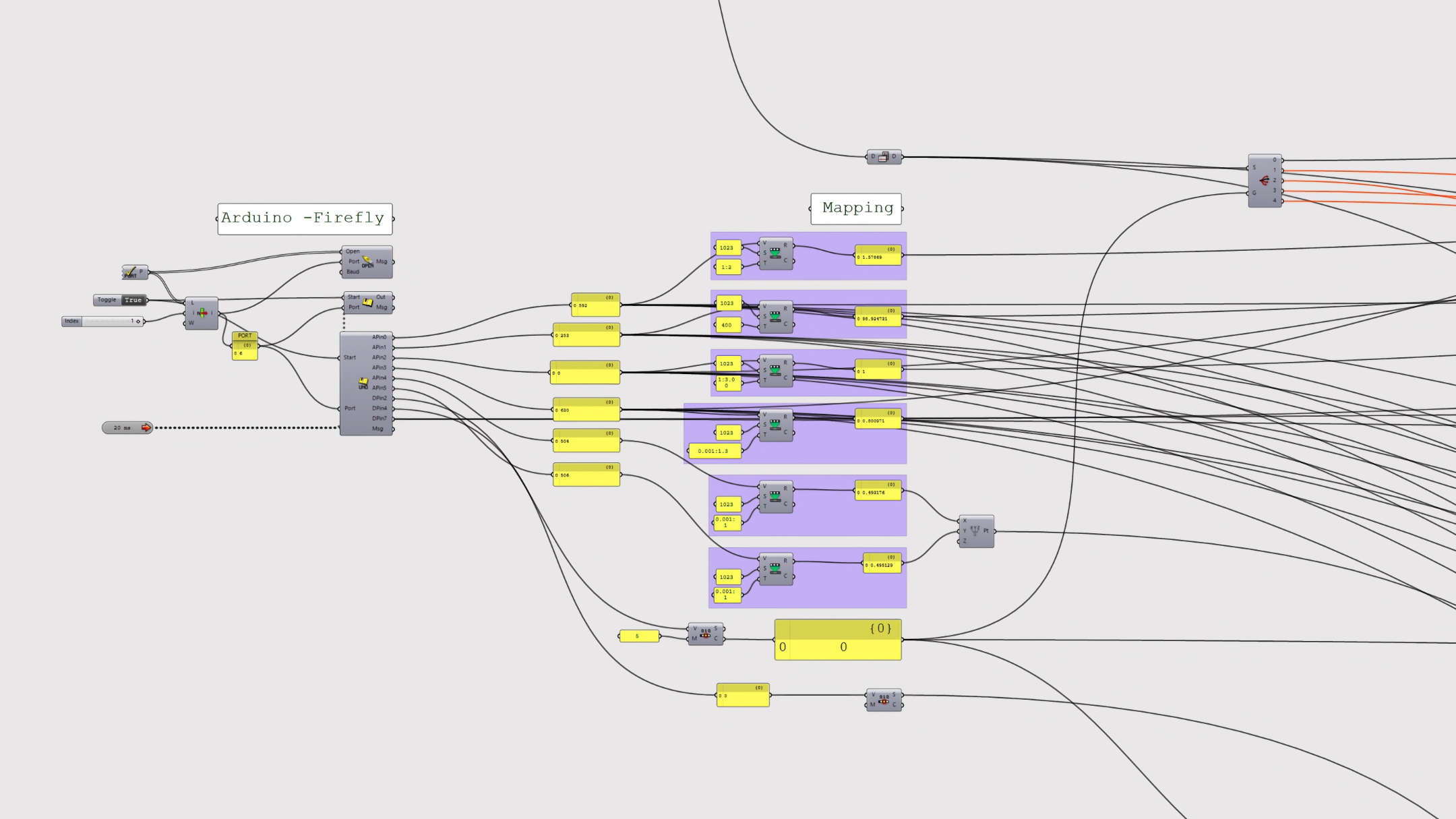 This mapping layer translated raw hardware input into controlled ranges that governed pattern density, scale, orientation, and graphic variation in the generative design system. By abstracting complex parametric controls into simple physical inputs, participants could interact with a live computational design model in an intuitive and responsive way.